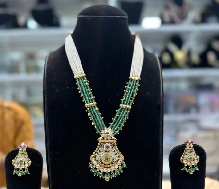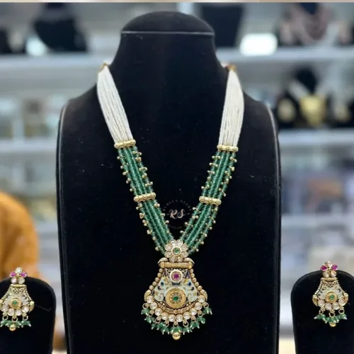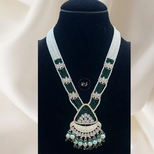 Real Look Green Moti Long Set Elegant Bridal Jewellery