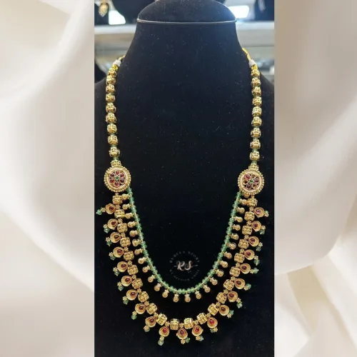 Rubela Real Look Antique Tarnish Temple Green Mala Set