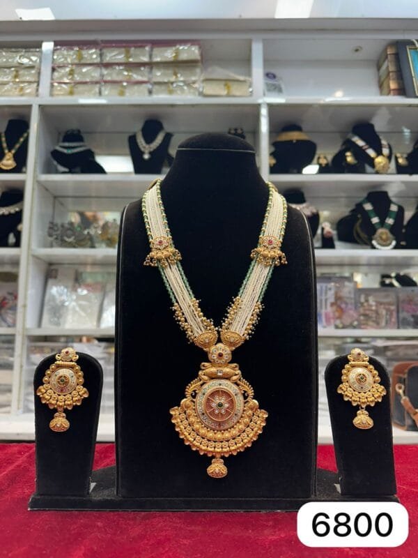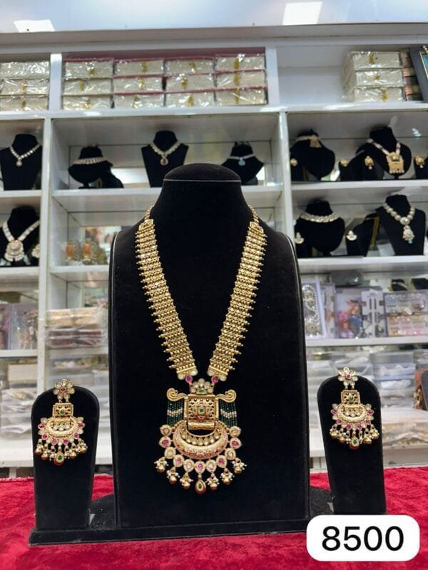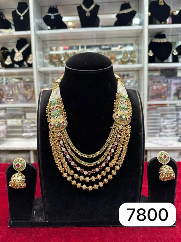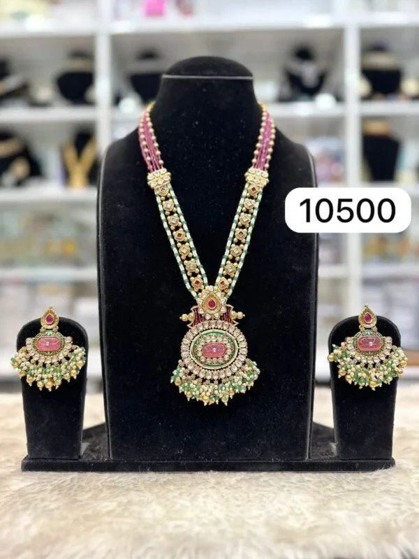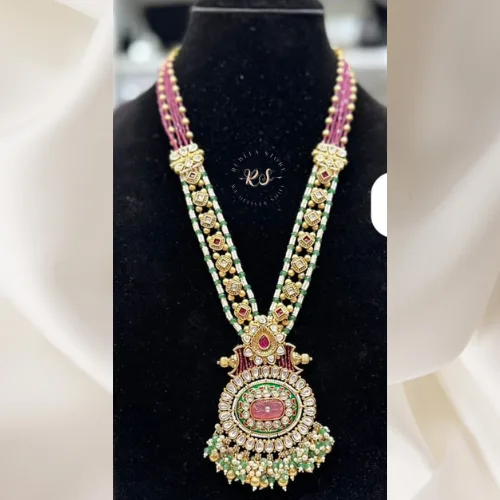 Add a touch of royal elegance to your festive or bridal look with this Real Look Long Set featuring exquisite Meena (Meenakari) work. Crafted with a gold-like shine, anti-tarnish finish, and intricate enamel artistry, this premium long necklace set is perfect for weddings, celebrations, and gifting.
