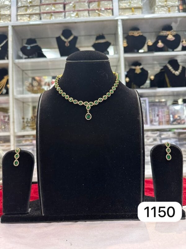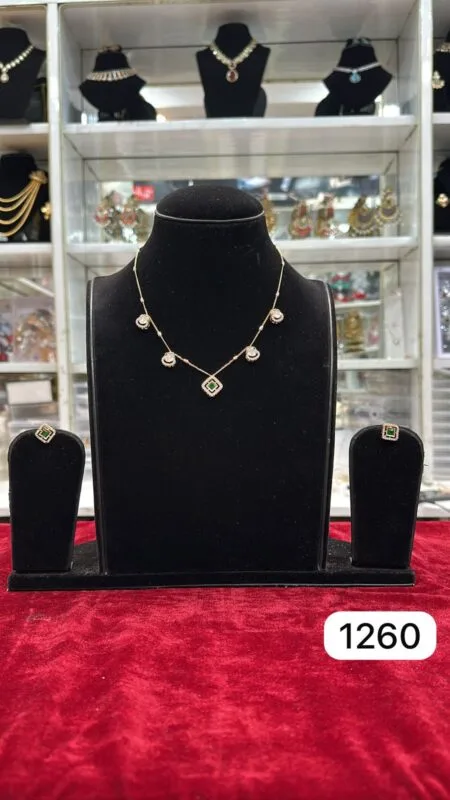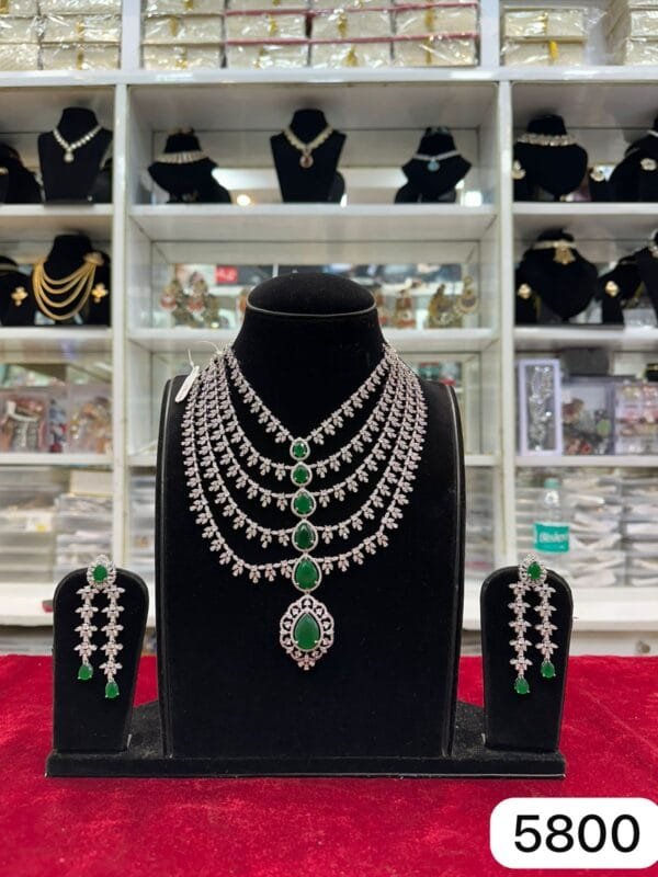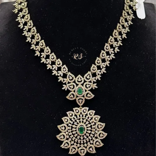 Experience luxury without limits. This green moissanite jewellery set features stunning brilliance, a rich gold finish, and a lightweight design—perfect for weddings, festivals, and grand celebrations.