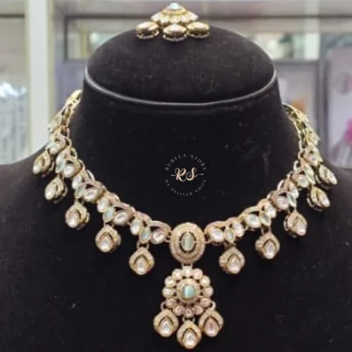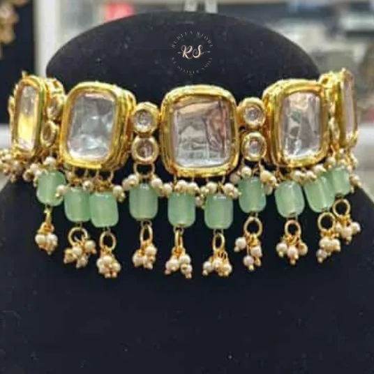 Rubela Golden Kundan Mint Choker Set – A Touch of Royal Grace