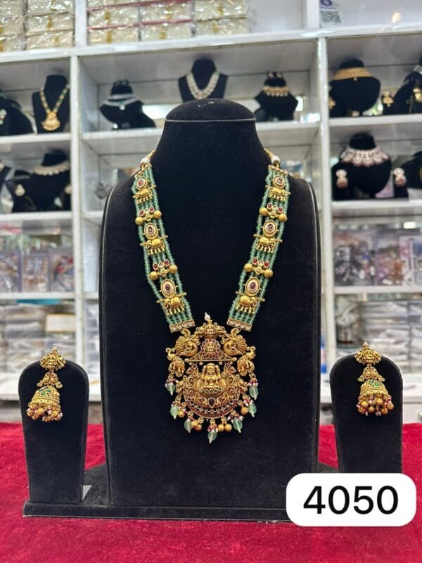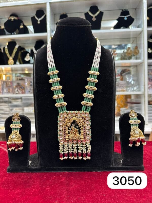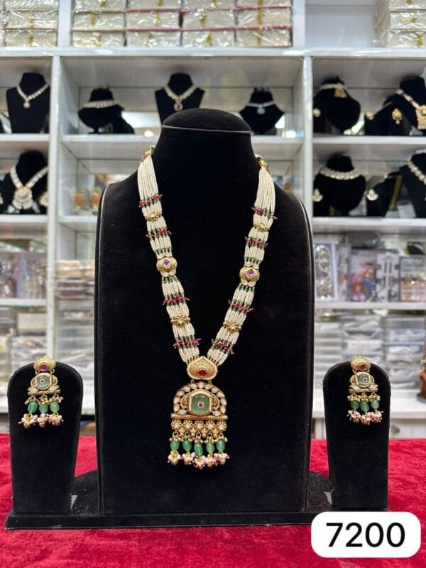 Real Look Green Moti Long Set Premium Bridal Style Jewellery
