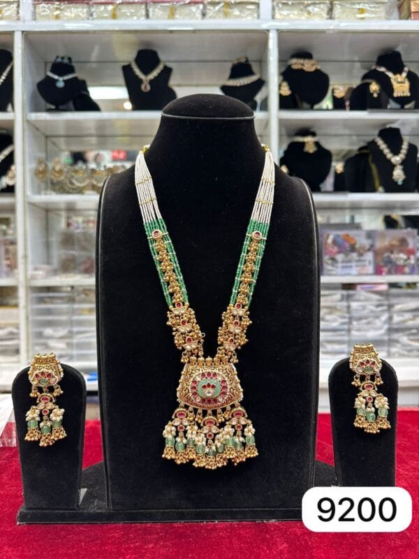 Real Look Ruby Green Moti Long Set Elegant Bridal Jewellery