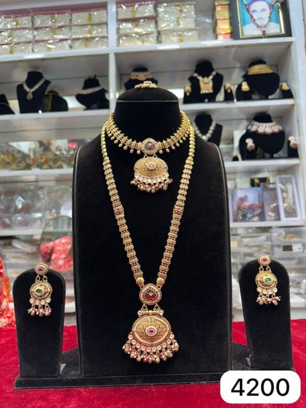 💎 Bridal & Wedding Jewellery Sets – Shop for Temple jewellery, Meenakari long sets, Rani Haar, Haram sets, CZ necklaces, and Maang Tikka sets.