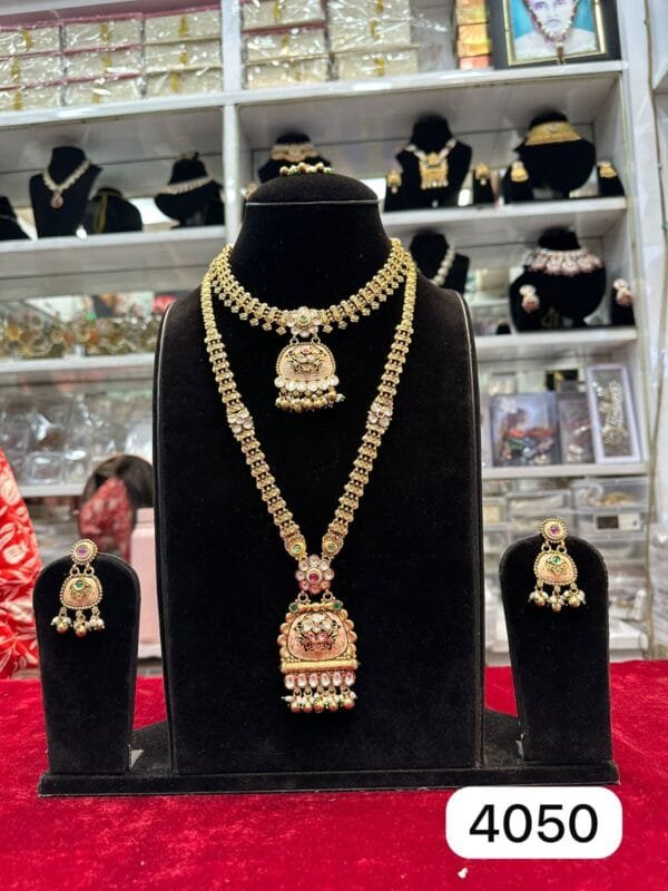 Real Look Temple Set with Ruby Moti Mala – Elegant
