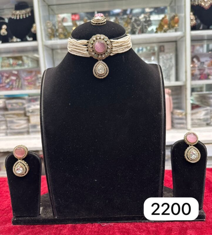 Real Look Mozonite Pink Choker Set Elegant Party Jewellery