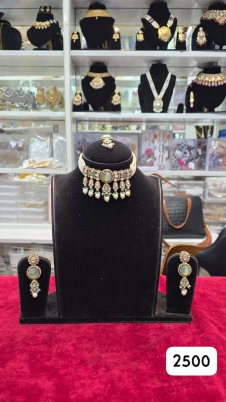 Real Look Mozonite Mint Choker Set Elegant Jewellery