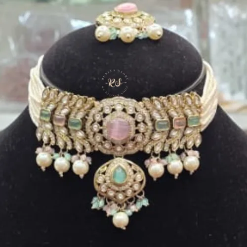 Charming White Pearl Work Jadau Necklace By Rubela Store