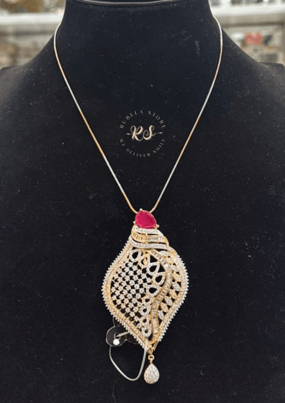 Real Look AD Ruby Stone Pendant Set Without Chain