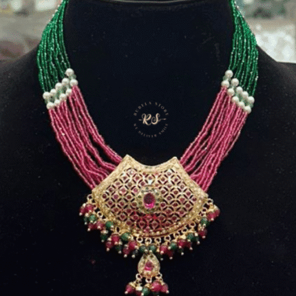 Experience timeless elegance with Rubela Store’s Handcrafted Jadau Set — a stunning trio of necklace, earrings, and maang tikka crafted using traditional jadau artistry. Each piece is handmade with uncut stones, pearls, and heritage techniques passed down through generations. Perfect for weddings, festive occasions, or intimate celebrations, this heirloom set adds grace, beauty, and tradition to every moment.
