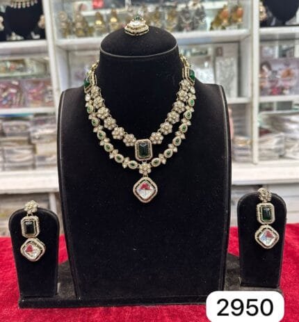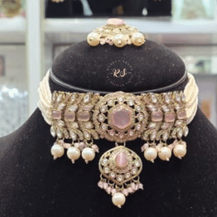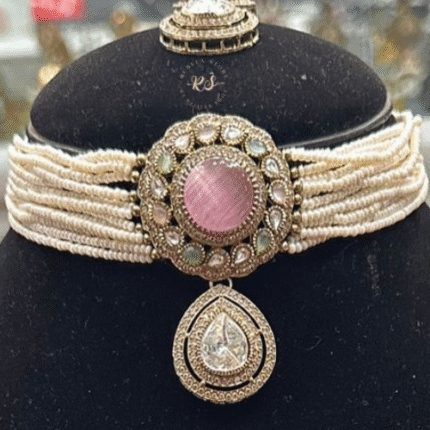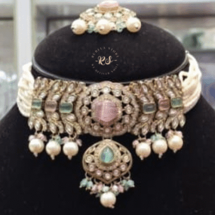 The Real Look Mozonite Multi Choker Set from Rubela Store features beautiful multi color stones with a rich real look. Crafted with premium mozonite stones. Perfect for weddings parties and festive occasions. A stylish choice for women who love vibrant and elegant jewellery.