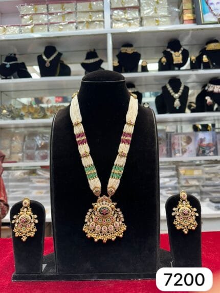 Add grace to your festive look with the Real Look Golden Kundan Work Long Set from Rubela Store. Designed with intricate Kundan detailing and golden shine, this long jewelry set brings royal charm and elegance. Perfect for weddings and celebrations. Visit Rubela Store and follow us on Instagram for more exclusive designs.
