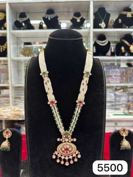 Add a touch of royal elegance to your festive or bridal look with this Real Look Long Set featuring exquisite Meena (Meenakari) work. Crafted with a gold-like shine, anti-tarnish finish, and intricate enamel artistry, this premium long necklace set is perfect for weddings, celebrations, and gifting.