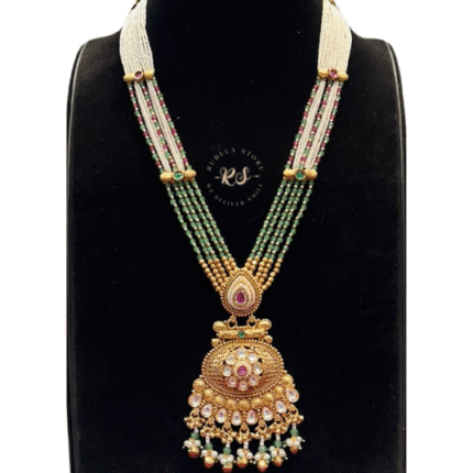 Real Look Green Moti Long Set Premium Bridal Jewellery