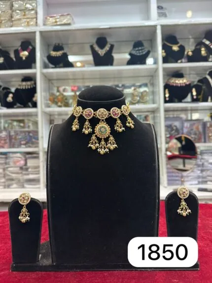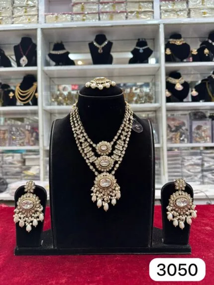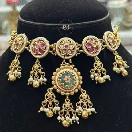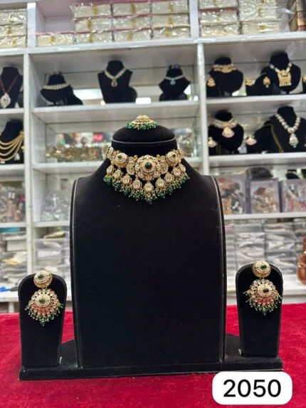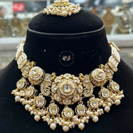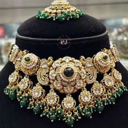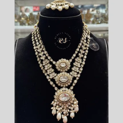 The Real Look Kundan Polki Santiqe Set from Rubela Store brings royal beauty with an antique touch. Crafted with premium materials, it gives the look of real gold and adds grace to any outfit. Perfect for weddings, parties, or festive wear. Explore more stunning pieces on Rubela Store’s Instagram.