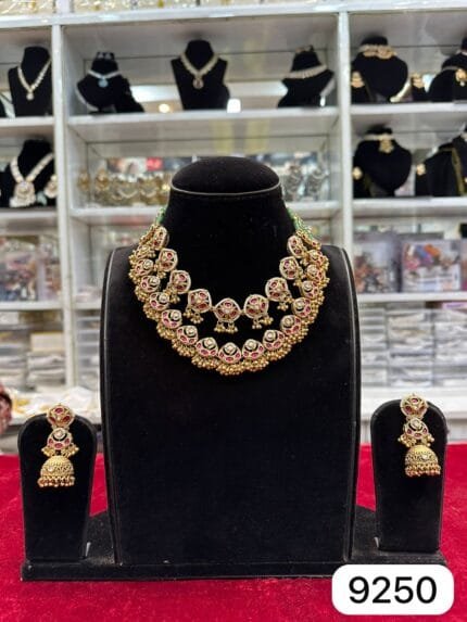 Shine like royalty with the Real Look Golden Heavy Set with Green Ruby Colour from Rubela Store. Crafted with care and fine detailing, this stunning jewelry set blends golden glow with rich stone hues. Perfect for weddings and festive events. Visit Rubela Store and follow us on Instagram for more updates.