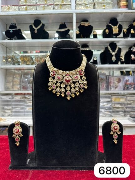 Add a royal touch to your look with the Real Look Golden Heritage Set with Ruby Colour from Rubela Store. Crafted with fine golden detailing and bright ruby stones, this set gives a rich and elegant finish. Perfect for weddings and festive events. Follow Rubela Store on Instagram for more beautiful designs.
