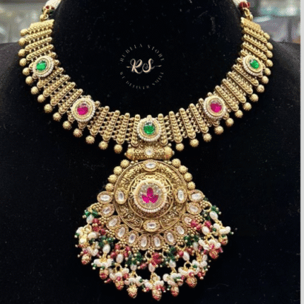 Add a royal glow to your look with the Real Look Golden Heavy Set from Rubela Store. Designed with rich golden detailing and fine craftsmanship, this jewelry set brings timeless beauty to your outfit. Perfect for weddings, parties, and festive occasions. Follow Rubela Store on Instagram for more elegant collections.