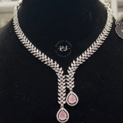 Add sparkle to your style with the Real Look AD Silver Pink Double Layair Set from Rubela Store. This elegant Indian jewellery features pink stones, silver polish, and a gold look design — perfect for weddings, festivals, and special occasions. Explore more on @storerubela.