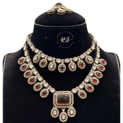 Add a royal sparkle to your style with the Real Look Mozonite Double Layer Set from Rubela Store. This elegant jewellery piece features premium mozonite stones that shine like real diamonds. Perfect for weddings, parties, and festive events. Visit @storerubela on Instagram for more stunning designs.