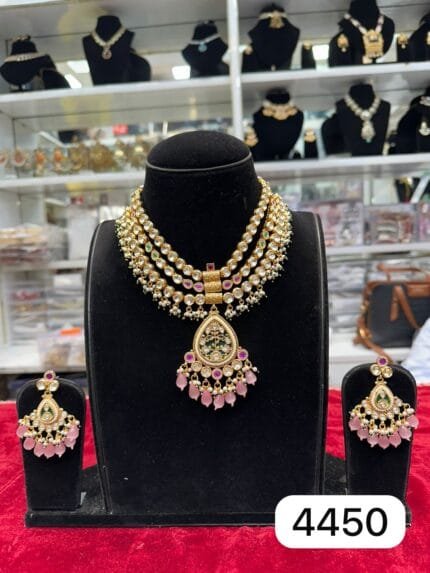 The Real Look Kundan Set from Rubela Store gives a bright and royal shine. It is crafted with care and made to look rich and elegant. Perfect for weddings and festivals this set adds beauty to any outfit. Rubela Store brings you premium quality jewelry that feels light and looks stunning for all special days.