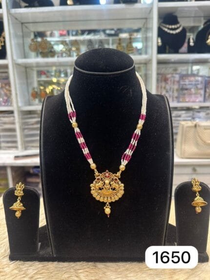 The Gold Look Temple Pendant Set from Rubela Store brings tradition and beauty together. With its antique temple-inspired design and gold polish, this set adds grace to any outfit. Rubela Store offers premium quality jewellery that shines like real gold. Explore more and follow us on Instagram.