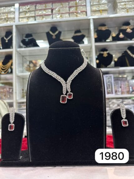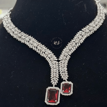 Add royal sparkle with the Real Look Diamond with Ruby Colour Set from Rubela Store. Designed with diamond-look stones and rich ruby red accents, this elegant jewelry set is perfect for weddings, parties, and festive occasions. Explore more designs at @rubelastore.