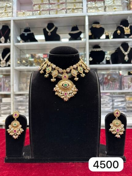 The Real Look Golden Rubi Green Set from Rubela Store is handcrafted with premium quality golden polish and vibrant rubi green stones. Perfect for weddings, parties, and festive occasions, this set adds royal charm to any outfit. Follow @rubelastore on Instagram for more.