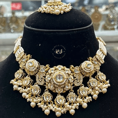 Enhance your ethnic look with this real look kundan choker set from Rubela Store Designed with premium finish and elegant shine this choker set is perfect for weddings festive functions and special celebrations