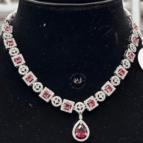 Add royal charm to your look with this real look AD set with rubi colour from Rubela Store Designed with premium shine and elegant finish this set is perfect for weddings festive functions parties and special events