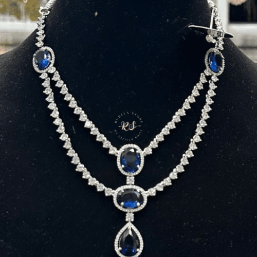 At Rubela Store we focus on premium quality in every jewellery piece. This AD blue set is made with high quality stones and a strong metal base. The polish is smooth and shiny. It gives a real gold and diamond look that stays beautiful for a long time with proper care.