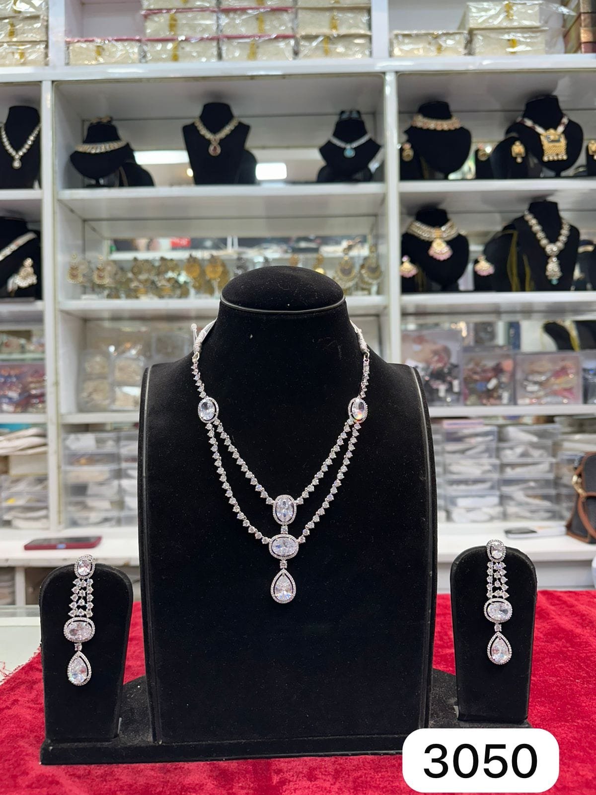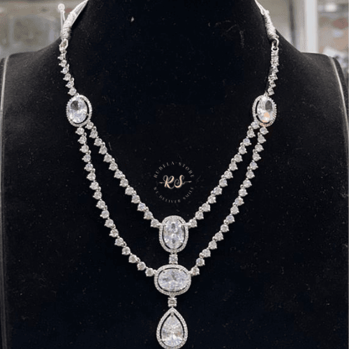 At Rubela Store we focus on premium quality in every jewellery piece. This AD silver set is crafted using high quality stones and a strong metal base. The polish is smooth and long lasting. It gives a real diamond and silver look that stays bright for a long time with proper care.