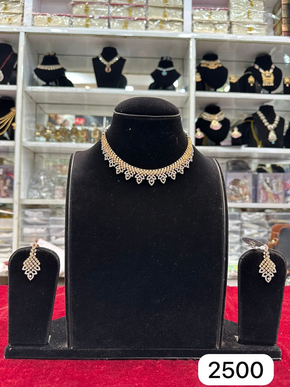 The Real Look AD Golden Set brings together the timeless appeal of gold with the brilliance of American Diamonds. Its golden base shines beautifully under every light, while the AD stones add a sparkling touch of glamour.