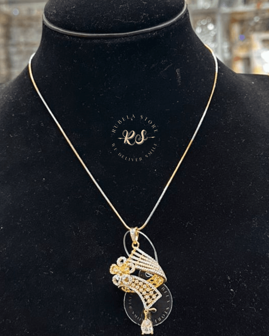 At Rubela Store we believe jewelry should look beautiful and last long This pendant set is made with premium quality AD stones that shine bright and give a real diamond look The polish is smooth and skin friendly It does not feel heavy and is comfortable to wear for long hours