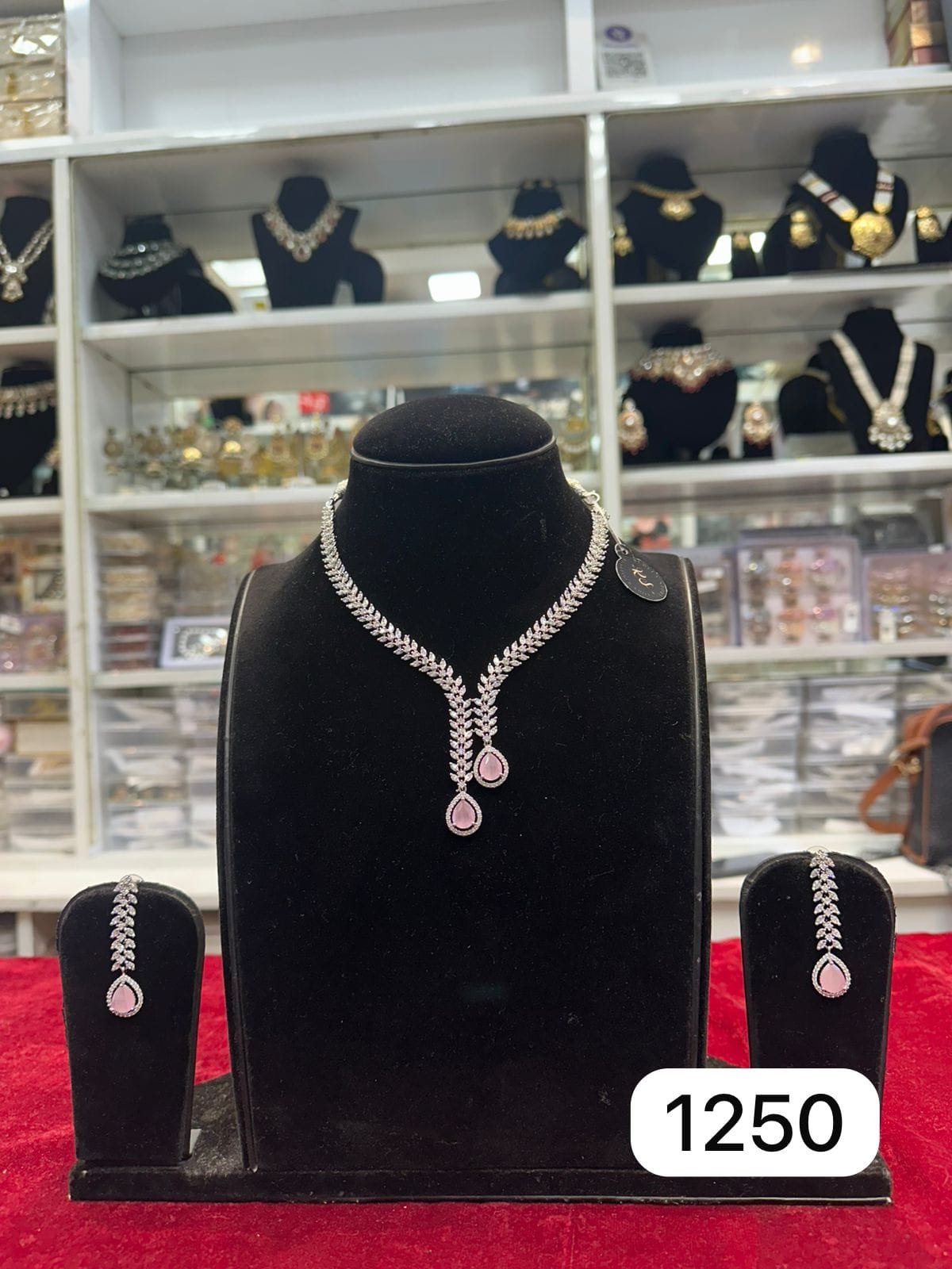 At rubela store we believe jewellery should look beautiful and feel comfortable This AD silver pink set is crafted using premium quality stones that give bright shine and strong finish Each stone is placed carefully for a neat look