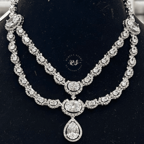 At Rubela Store we focus on premium quality in every jewellery piece. This AD silver set is made using high quality stones and a strong metal base. The polish is smooth and long lasting. It gives a real diamond and silver look that stays bright with proper care.