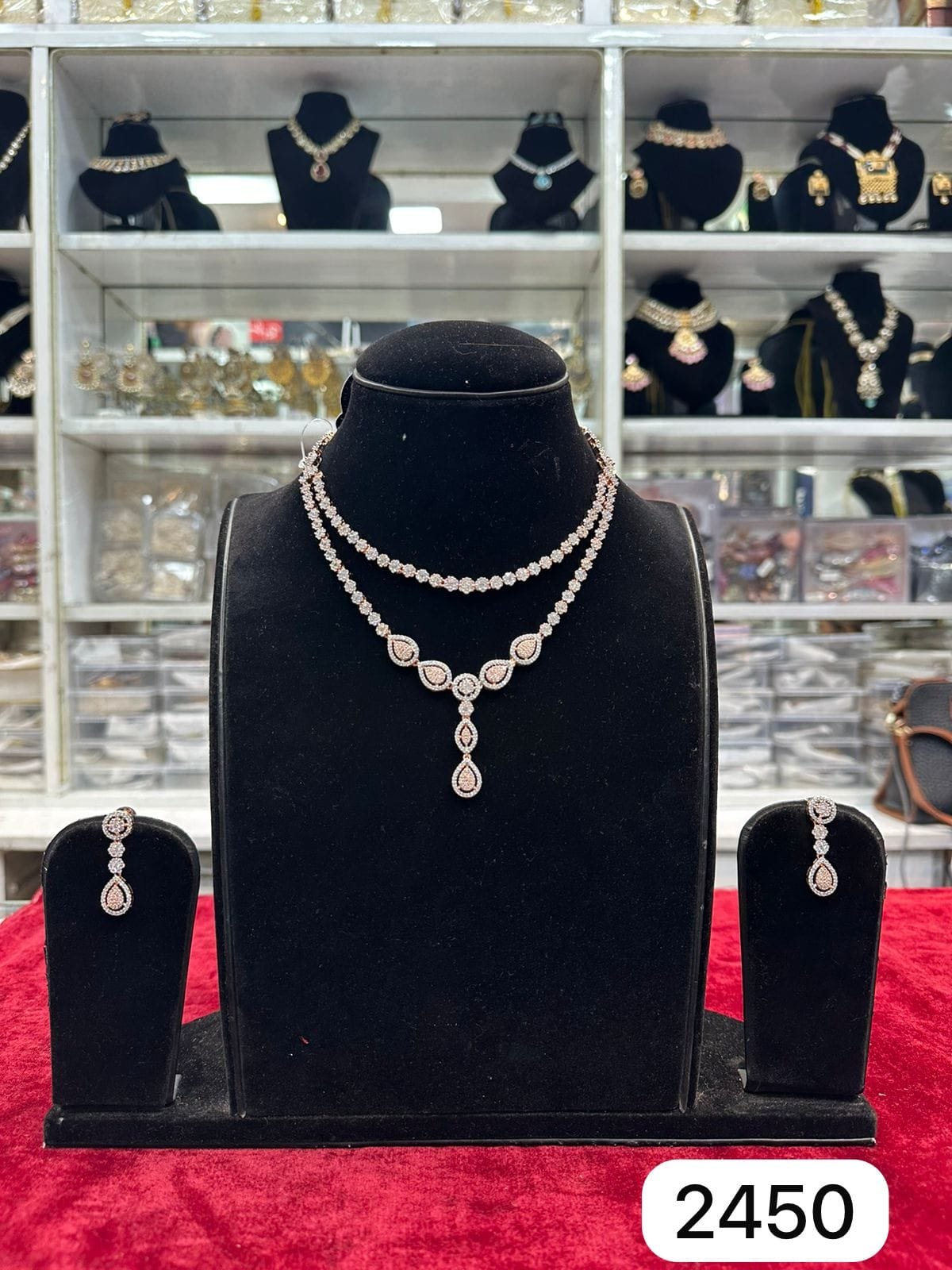 The set is crafted with premium American Diamond (AD) stones and a durable metal base.