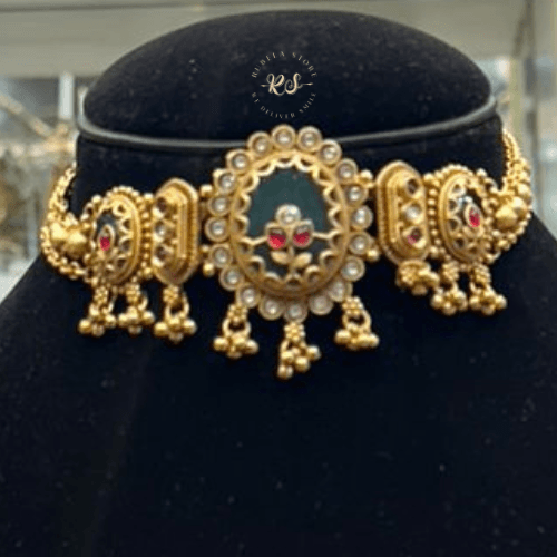 The Real Look Heritage Set from Rubela Store is a great choice because of its shine, style and comfort. It looks royal but stays light on the neck and ears. The design is simple yet graceful which makes it suitable for many events. You can keep this set for long use as the material is strong and skin friendly.