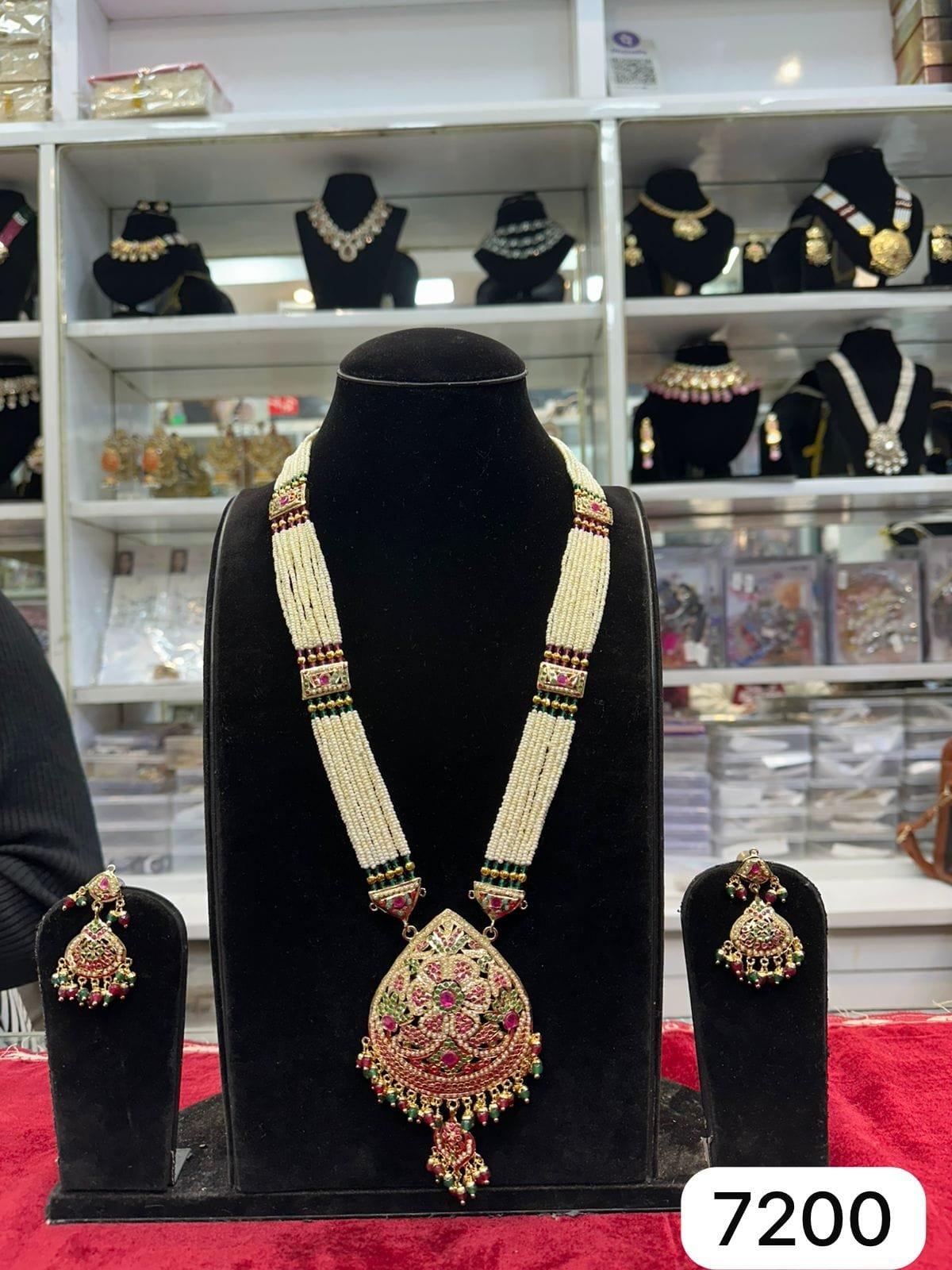 At rubela store we believe quality makes jewellery special This jadau long set is crafted with premium quality stones and fine detailing Each element is carefully placed to create a balanced and elegant design