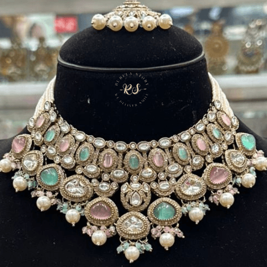 At Rubela Store, every piece is made with precision and care. The Real Look Kundan Polki Double Tone Antique Set is crafted from premium quality alloy, featuring: