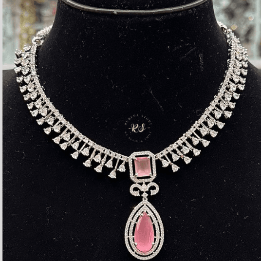 The Real Look Diamond Set with Pink Set is a perfect addition to your jewelry collection. Its sparkling stones and soft pink accents make it ideal for weddings, parties, and festive events.
