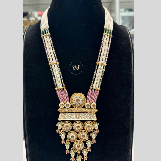 This long mala enhances your outfit effortlessly, making you look royal and stylish.
