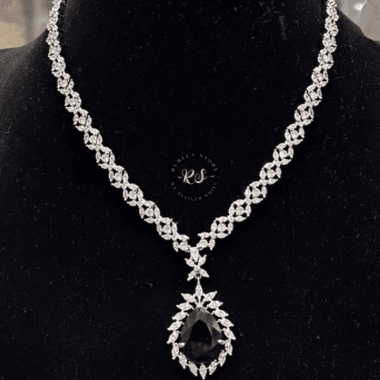 Shine bright with the Real Look Diamond Set in navy blue from Rubela Store. Crafted with fine detailing, this jewellery gives a real diamond look at a fraction of the cost. Perfect for weddings and parties. Visit @storerubela on Instagram for more premium designs.