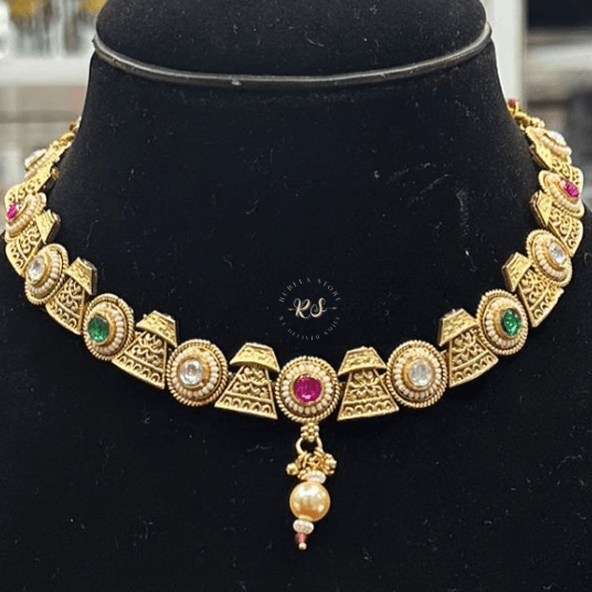The Real Look Golden Set is made for every special moment. Its design suits both traditional and modern outfits. Wear it with a saree, lehenga, or anarkali for weddings and festivals, or style it with a gown for a modern royal touch.