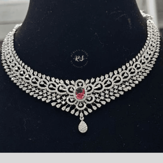 Add royal sparkle with the Real Look Diamond with Ruby Colour Set from Rubela Store. Designed with diamond-look stones and rich ruby red accents, this elegant jewelry set is perfect for weddings, parties, and festive occasions. Explore more designs at @rubelastore.
