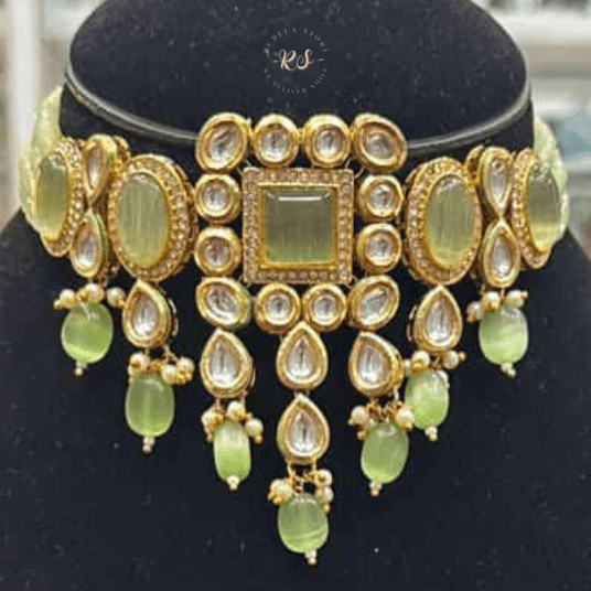 Rubela Golden Kundan Mint Choker Set – A Touch of Royal Grace