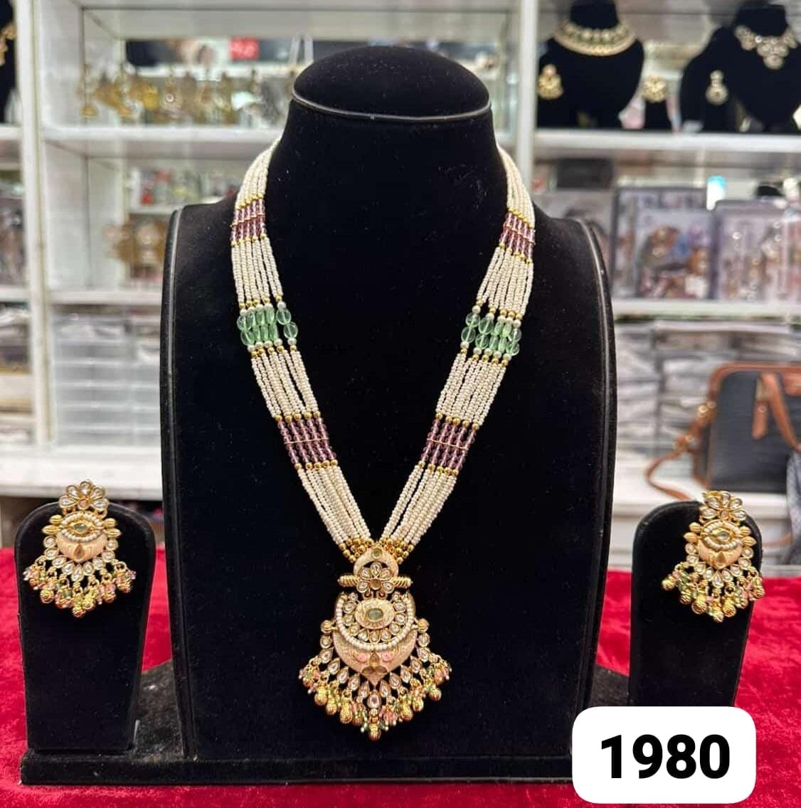 If you want a jewelry set that gives royal vibes without being too heavy, this is the perfect choice. The long design makes your outfit look grand and stylish. The fine polki work adds sparkle that shines with every move.