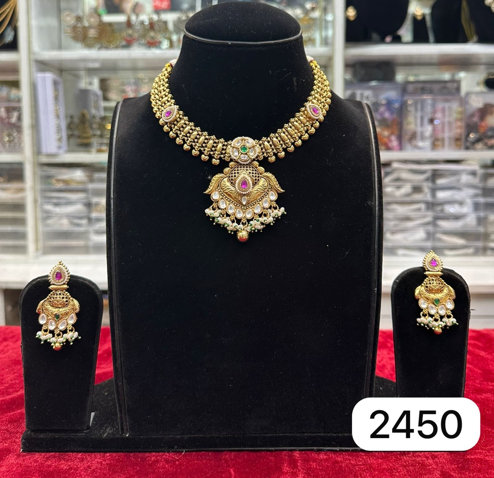 The Real Look Golden Set is made for every special moment. Its design suits both traditional and modern outfits. Wear it with a saree, lehenga, or anarkali for weddings and festivals, or style it with a gown for a modern royal touch.