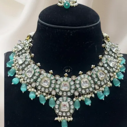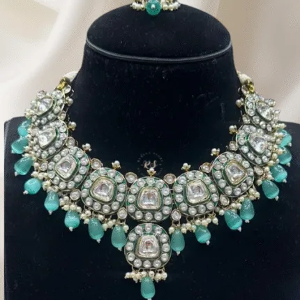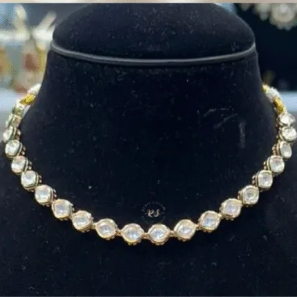 The Real Look Kundan Heavy Set is inspired by traditional royal Indian jewellery. Every stone is carefully set to resemble authentic Kundan work. The golden polish enhances its rich and elegant look, while the arrangement of stones reflects a royal design aesthetic.This set includes a statement necklace and matching earrings, designed to complement each other perfectly. Its detailed patterns and heavy design make it suitable for weddings, parties, and festive occasions. Despite its grand appearance, the set is comfortable to wear for long hours.3. Premium Quality and Craftsmanship