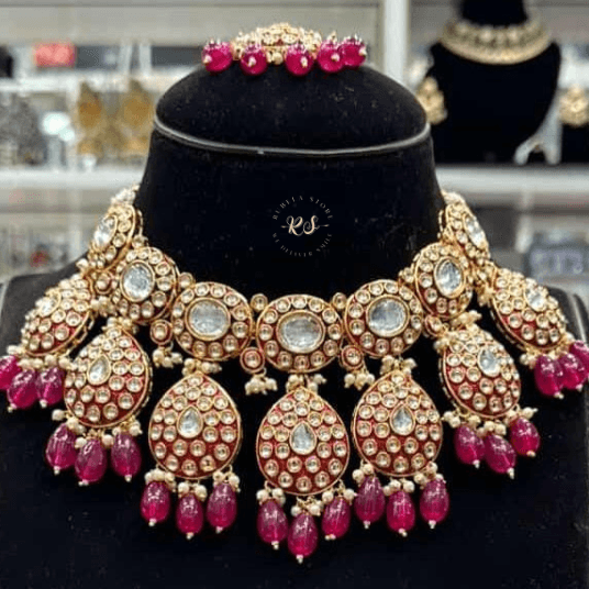 Add royal charm with the Real Look Mina Kari Kundan Rubi Set from Rubela Store. Handcrafted with care, it combines Kundan stones and Mina Kari art for a rich traditional look. Perfect for weddings and festivals. Explore timeless elegance and follow @rubelastore on Instagram for more designs.